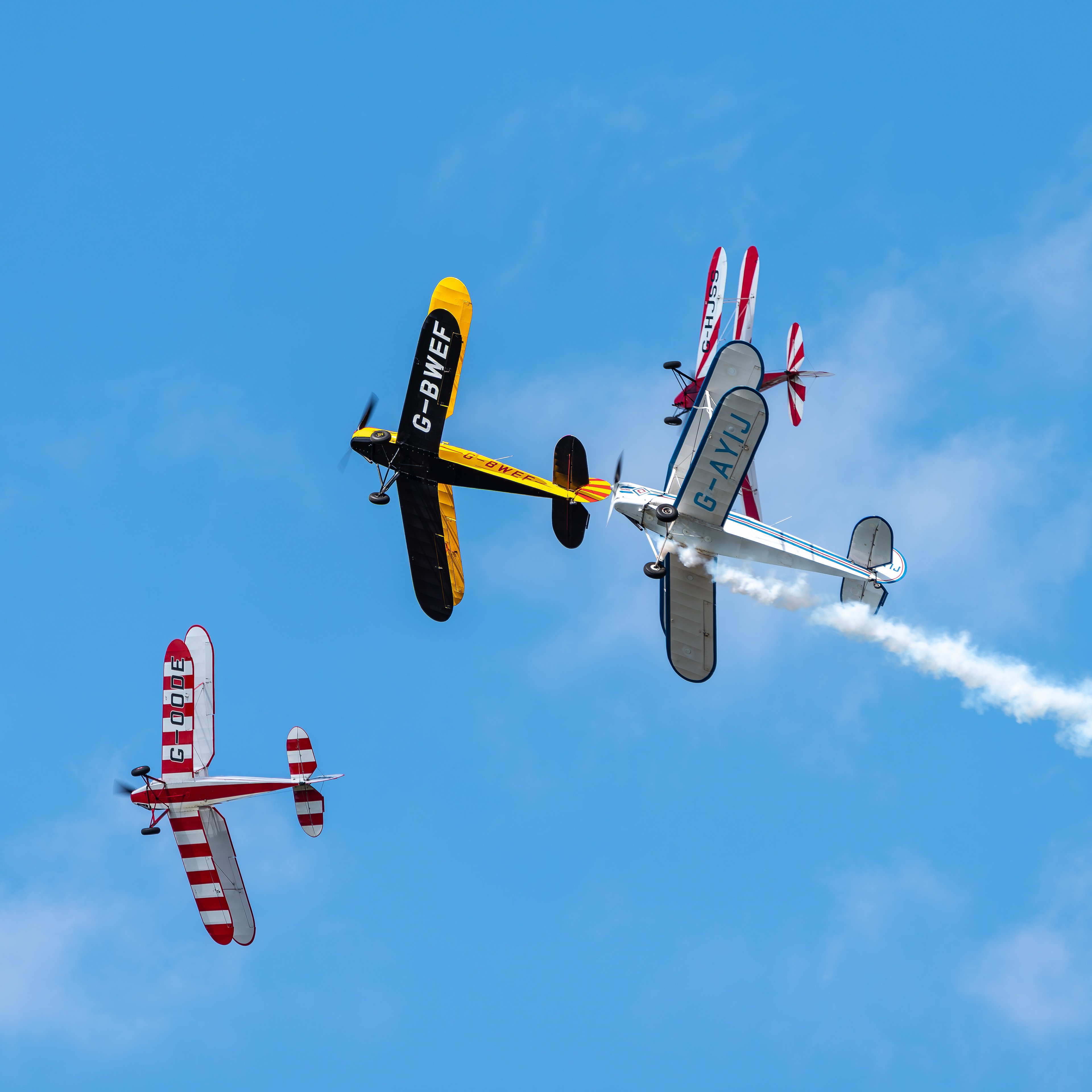 A sunny summer afternoon at Headcorn airfield. You never know what will be there, this time an impromtu air display by 4 Stampe and Vertongen SV4's alongside the parachutists.
